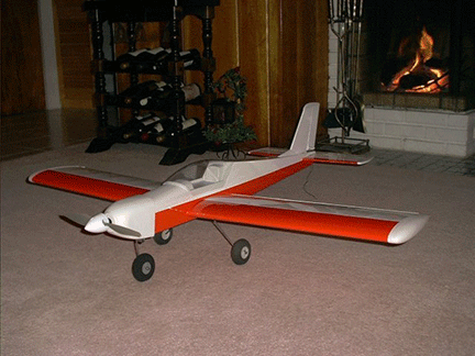 טיסן מתכונתי עשוי מעץ בלזה מחוזק באוביצ'ה, ציפוי מגוהץ, אפשרות למדפים, כני גלגלים סקייל למנועי 46-61 שתי או ארבע פעימות