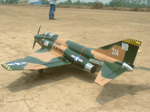 טיסן מתכונתי למנועי 46-61 , דמוי מטוס קרב אמריקאי - עשוי מבלזה מחוזק באוביצ'ה הכל חתוך לייזר, כולל ספינר אלומיניום