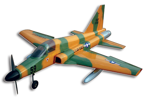 טיסן מתכונתי למנועי 60-100, דמוי מטוס קרב אמריקאי - עשוי מבלזה מחוזק באוביצ'ה הכל חתוך לייזר, כולל ספינר אלומיניום וכני גלגלים סקייל