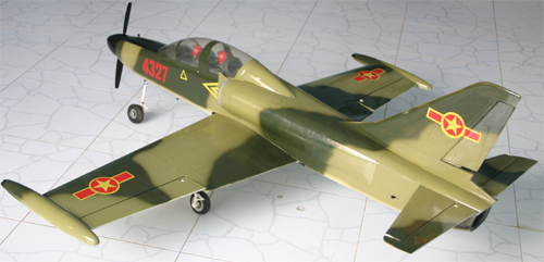 טיסן מתכונתי למנועי 46-61, דמוי מטוס סילון אימונים צ'כי - עשוי מבלזה מחוזק באוביצ'ה הכל חתוך לייזר, כולל ספינר אלומיניום